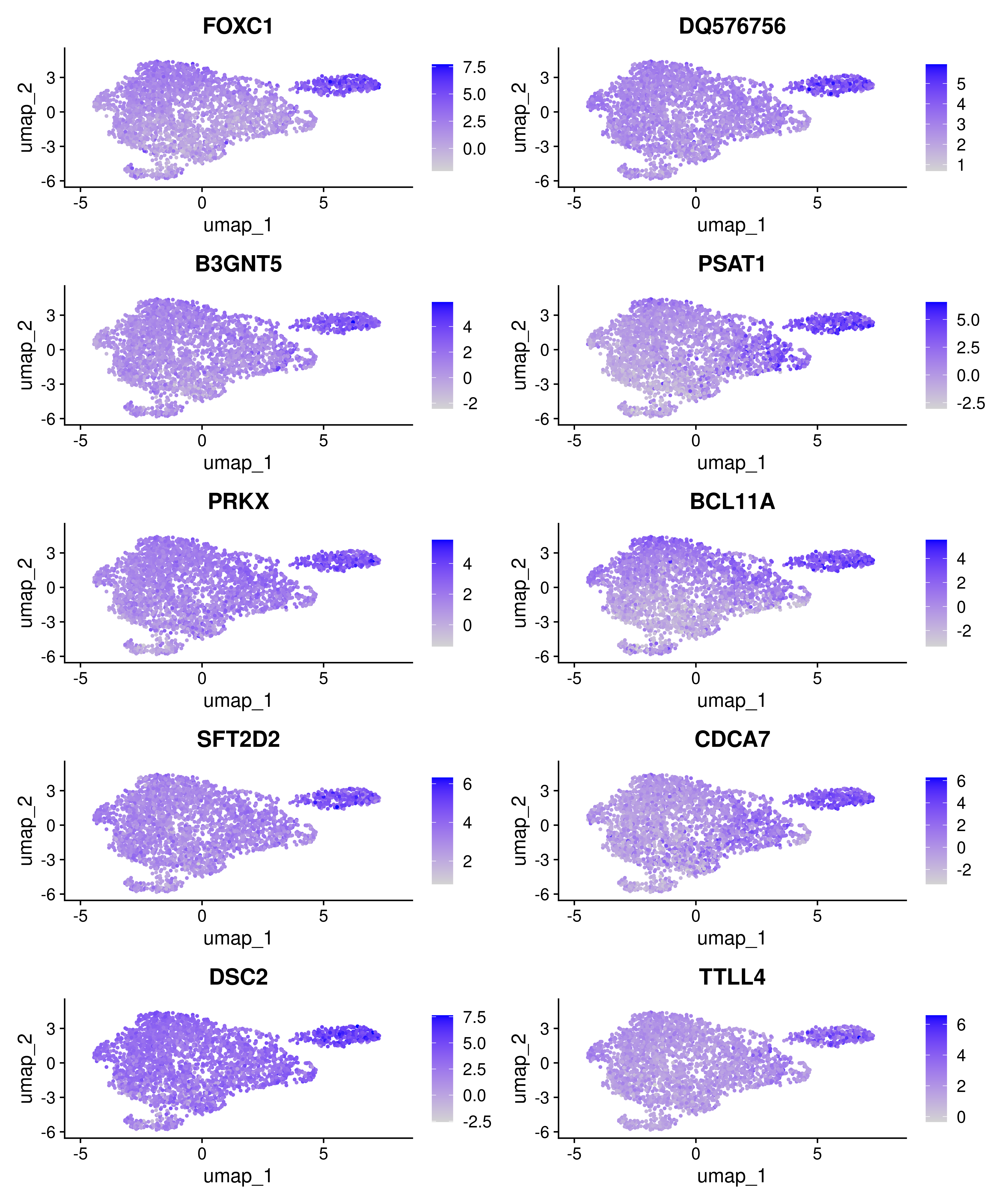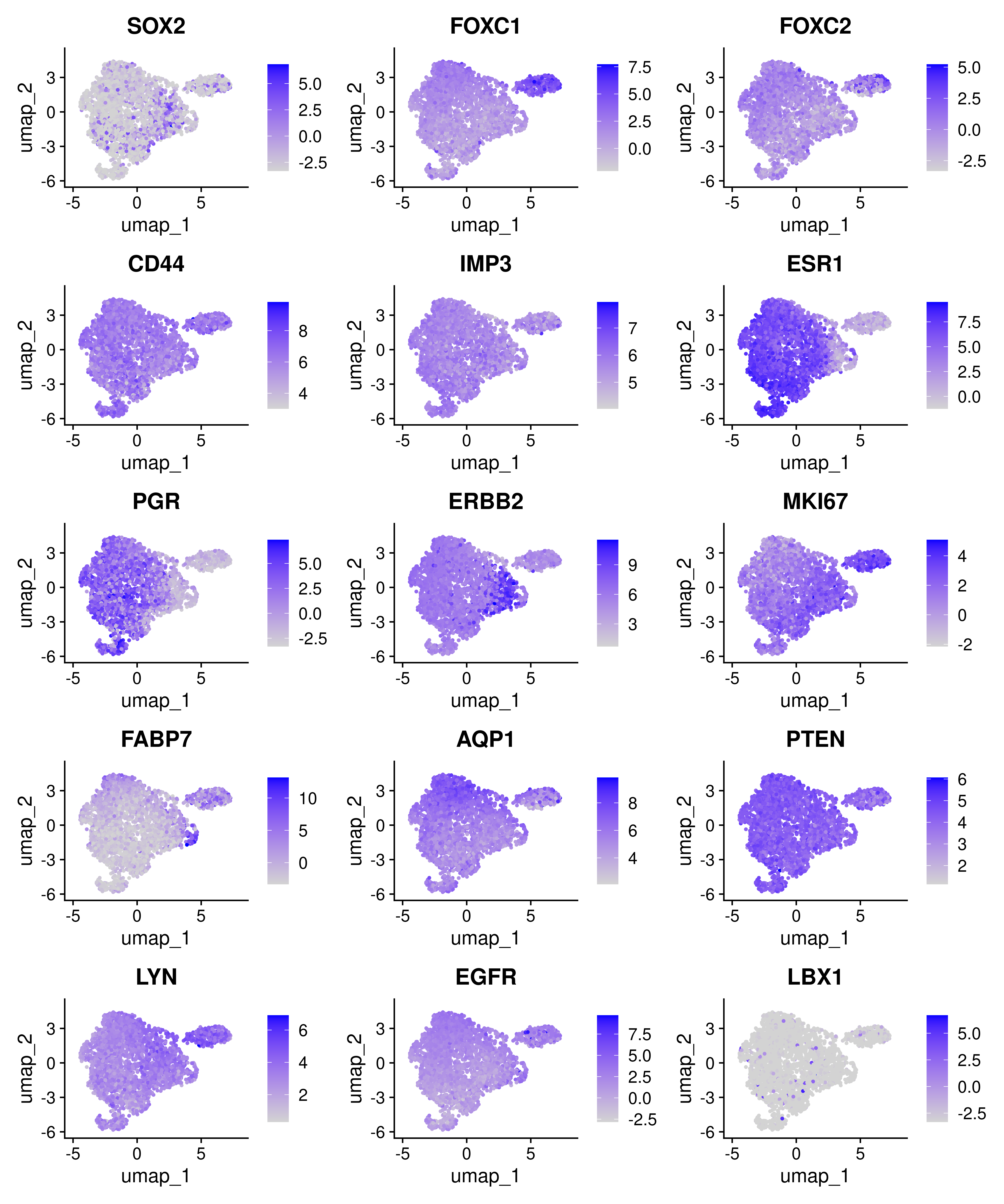 features = c('SOX2', 'FOXC1', 'FOXC2', 'CD44', 'IMP3', 'ESR1',