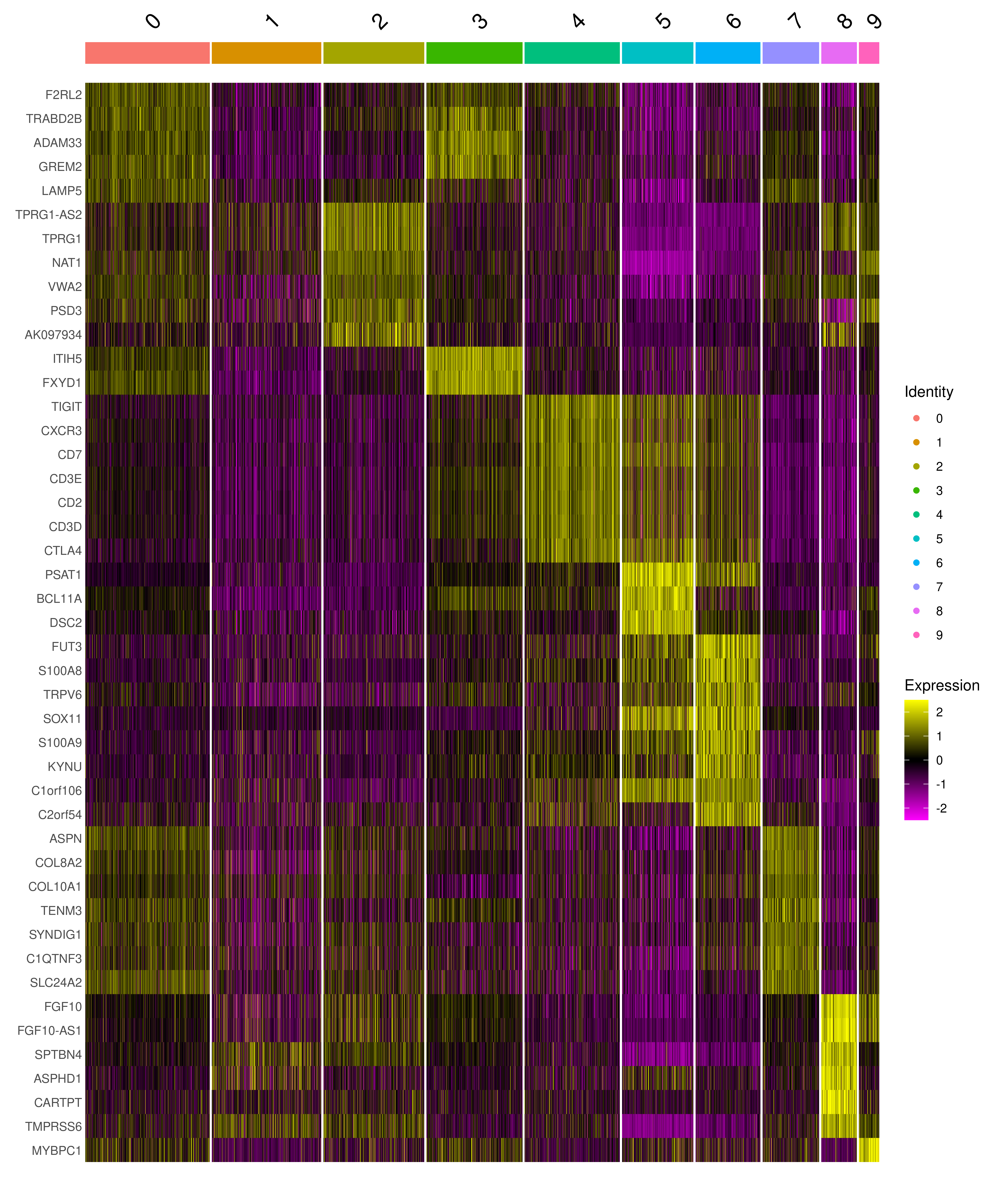 ungroup()Seurat::DoHeatmap(sobj, features = top10down$gene)