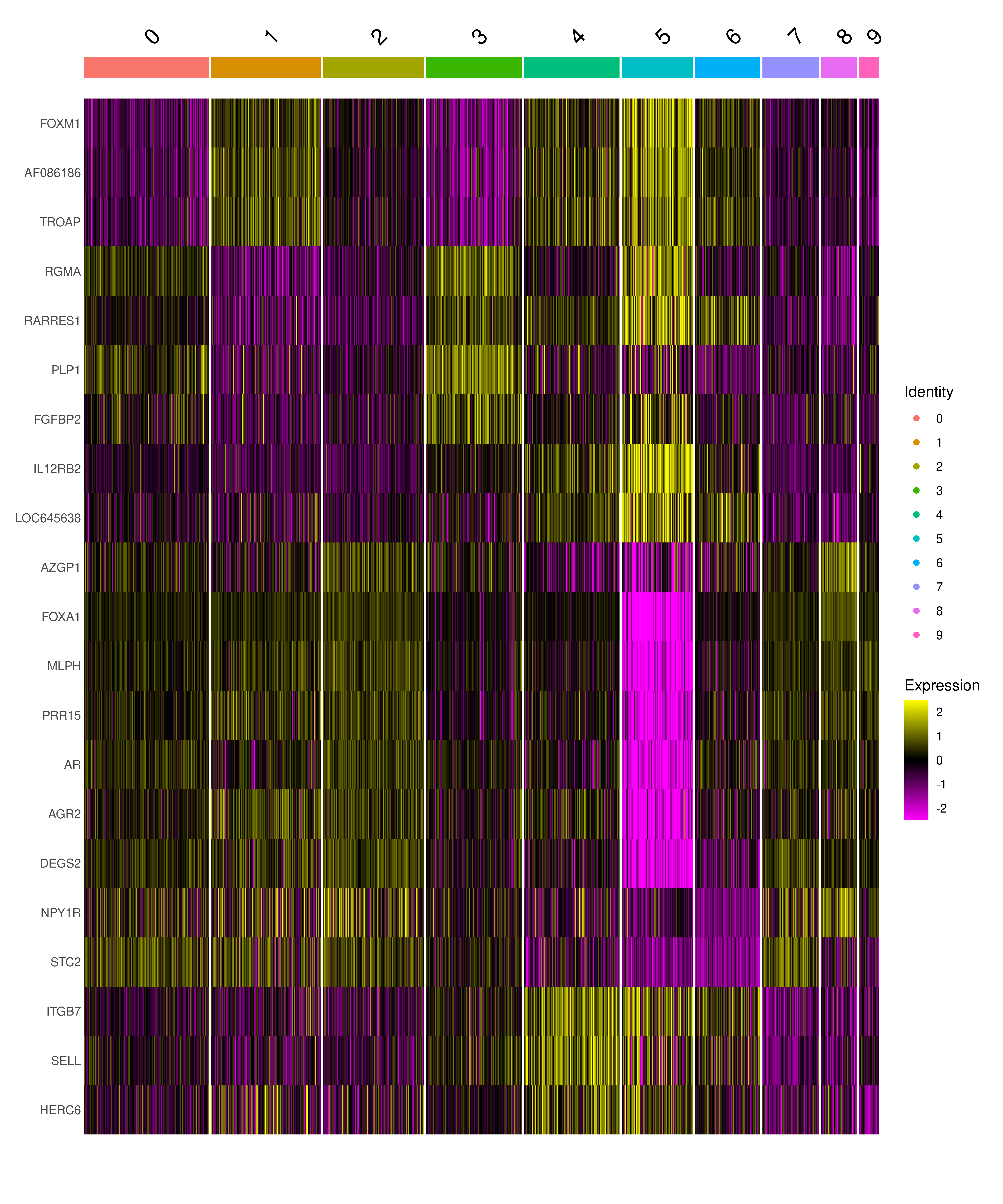 - identify up- and down-regulated markers for every cluster compared to all the others.