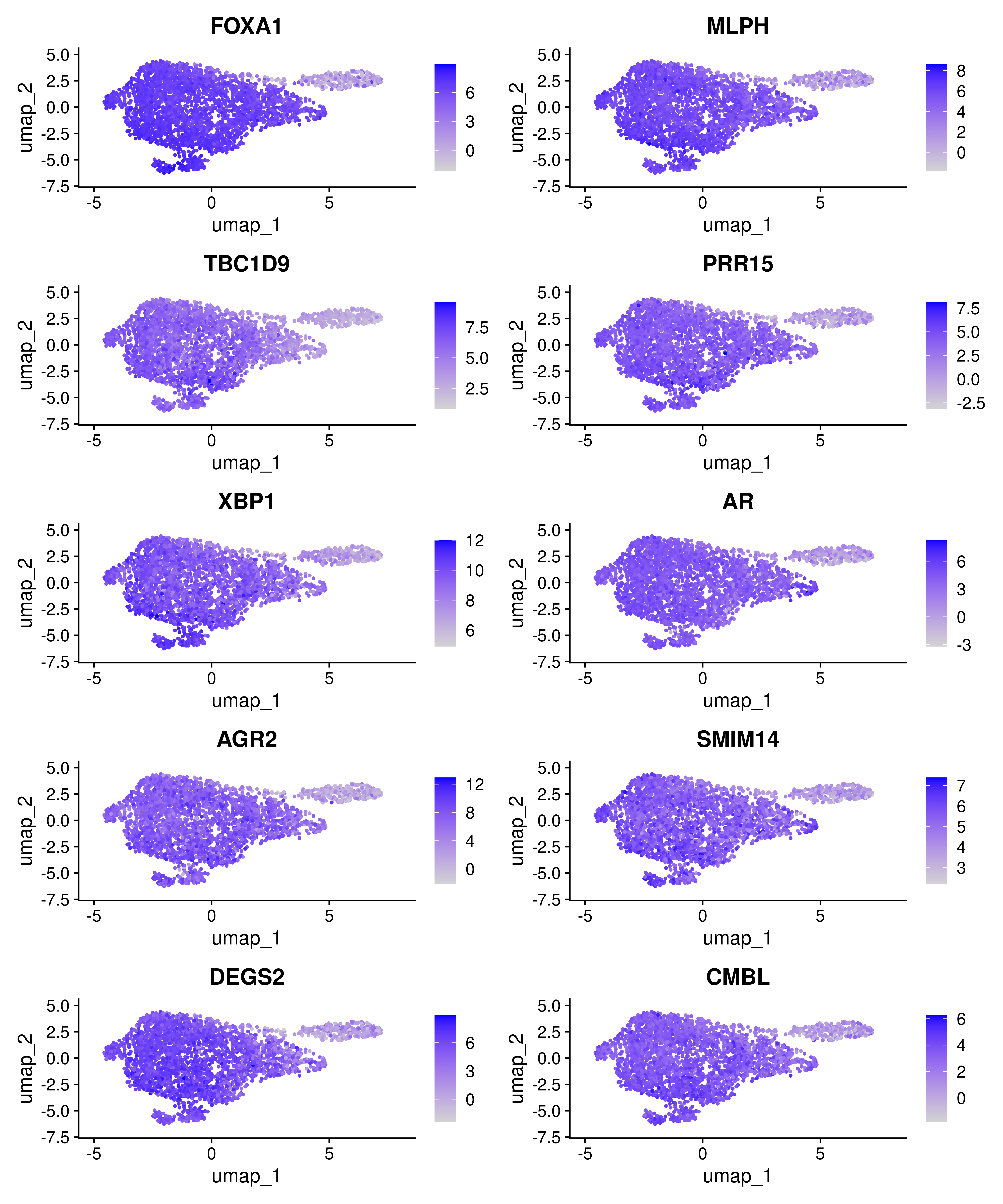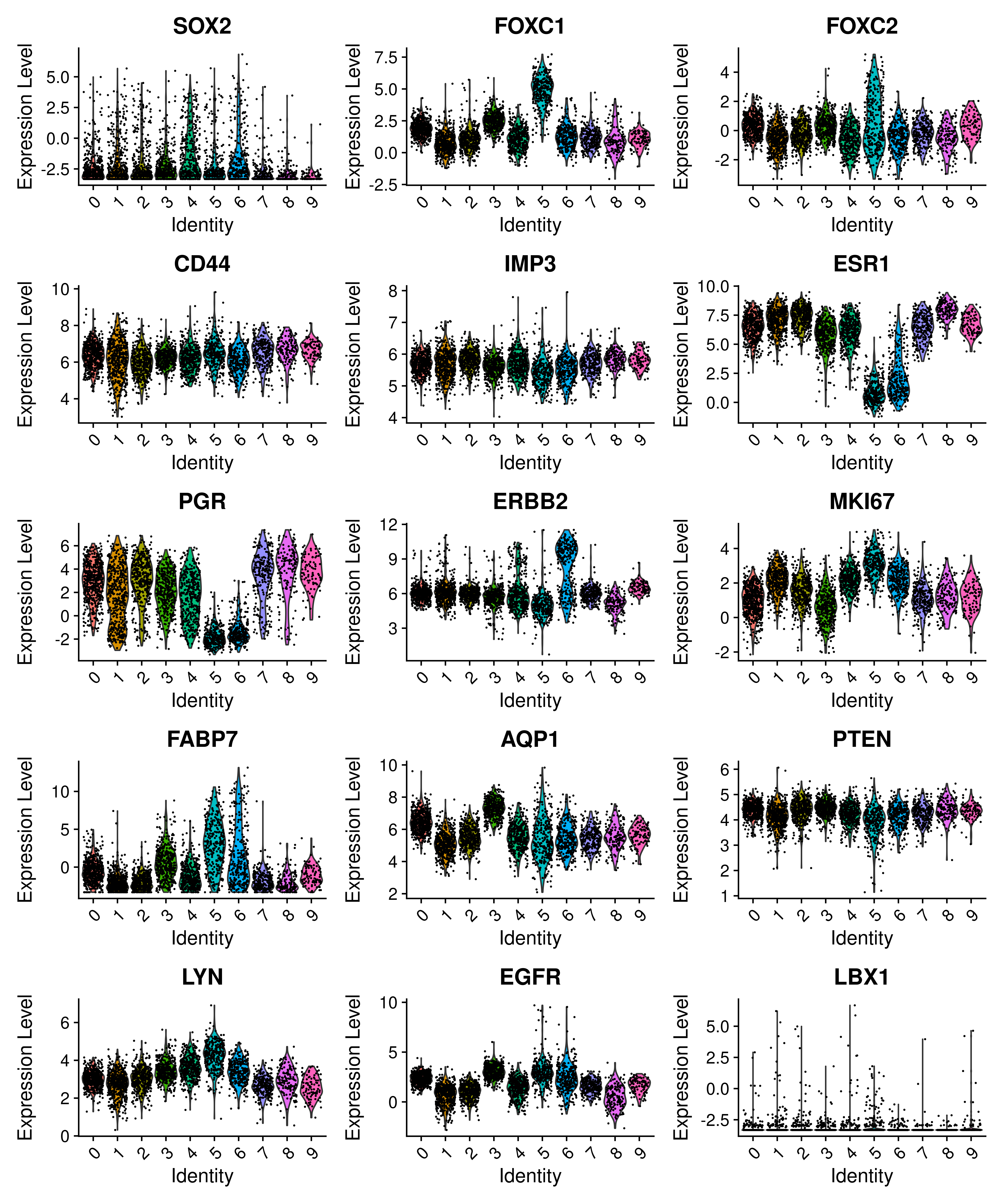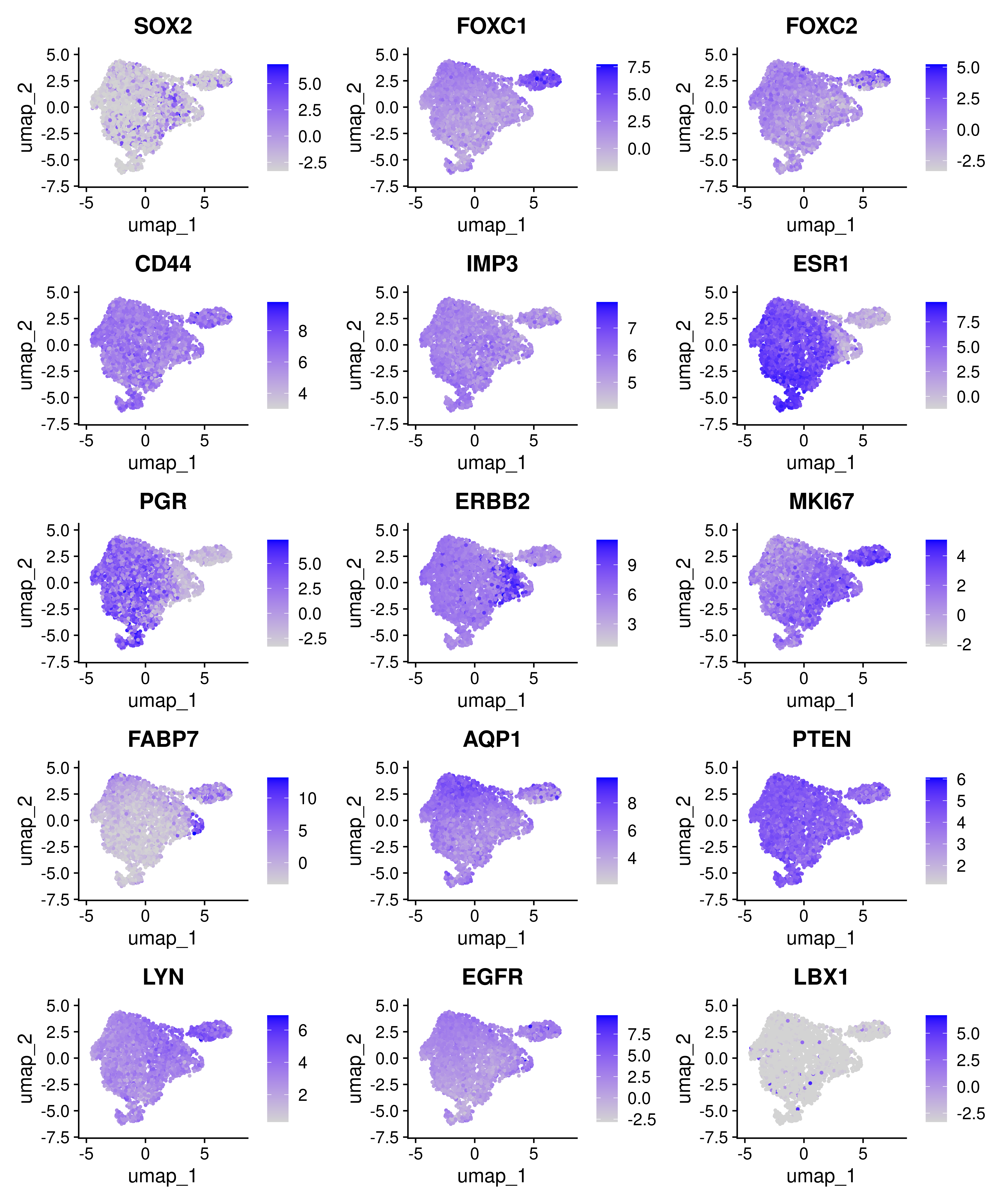 features = c('SOX2', 'FOXC1', 'FOXC2', 'CD44', 'IMP3', 'ESR1',