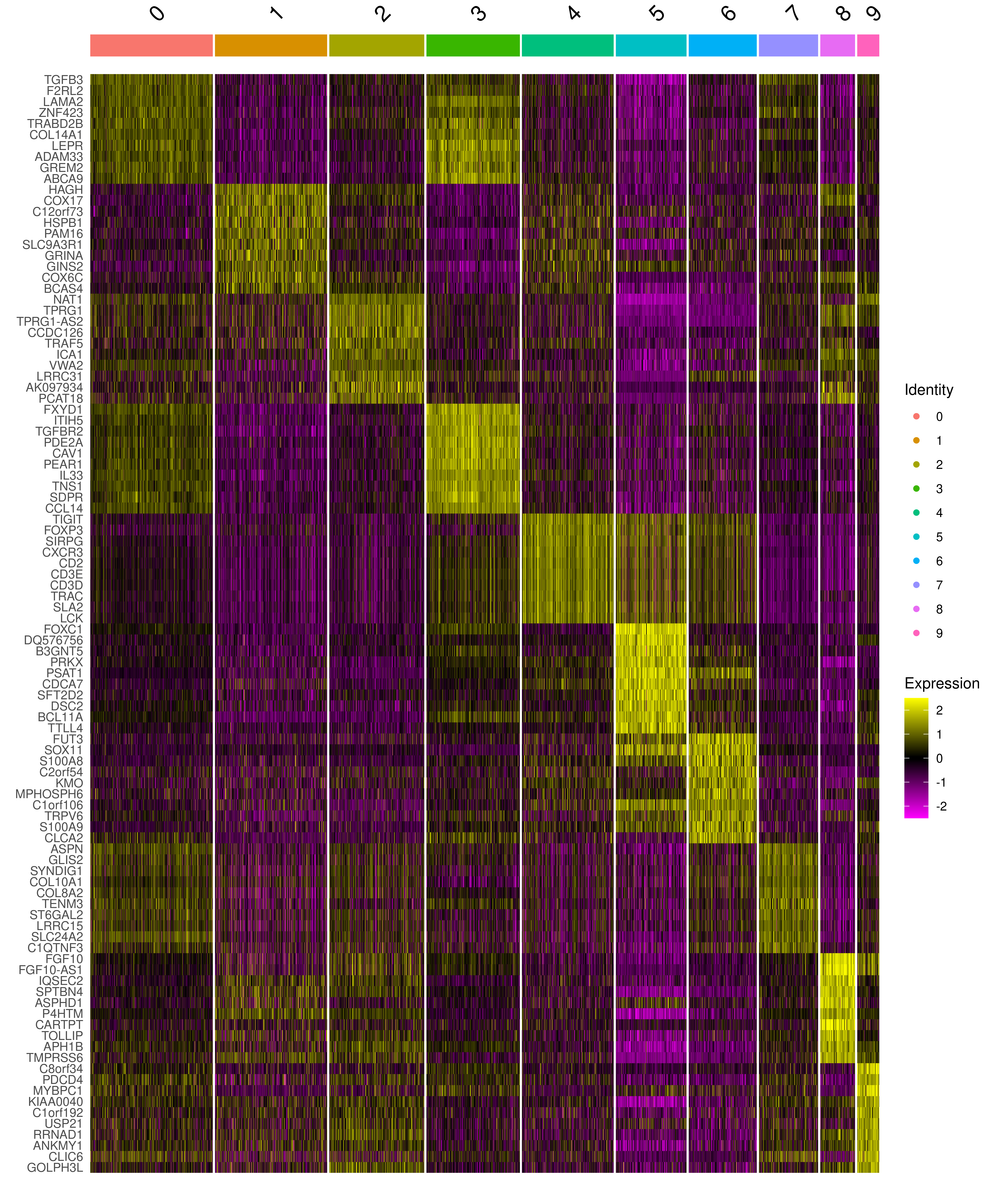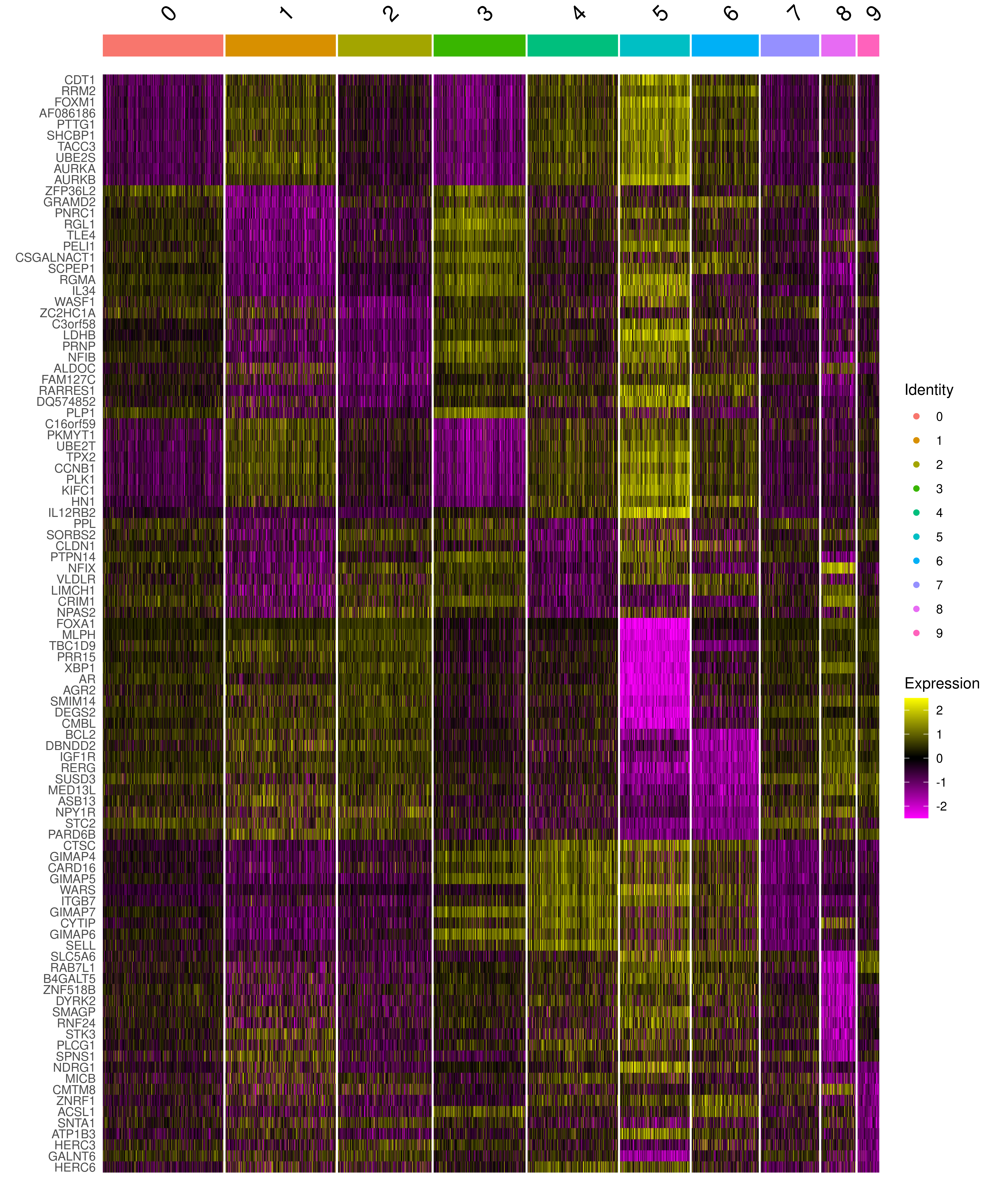Seurat::DoHeatmap(sobj, features = top10up$gene)